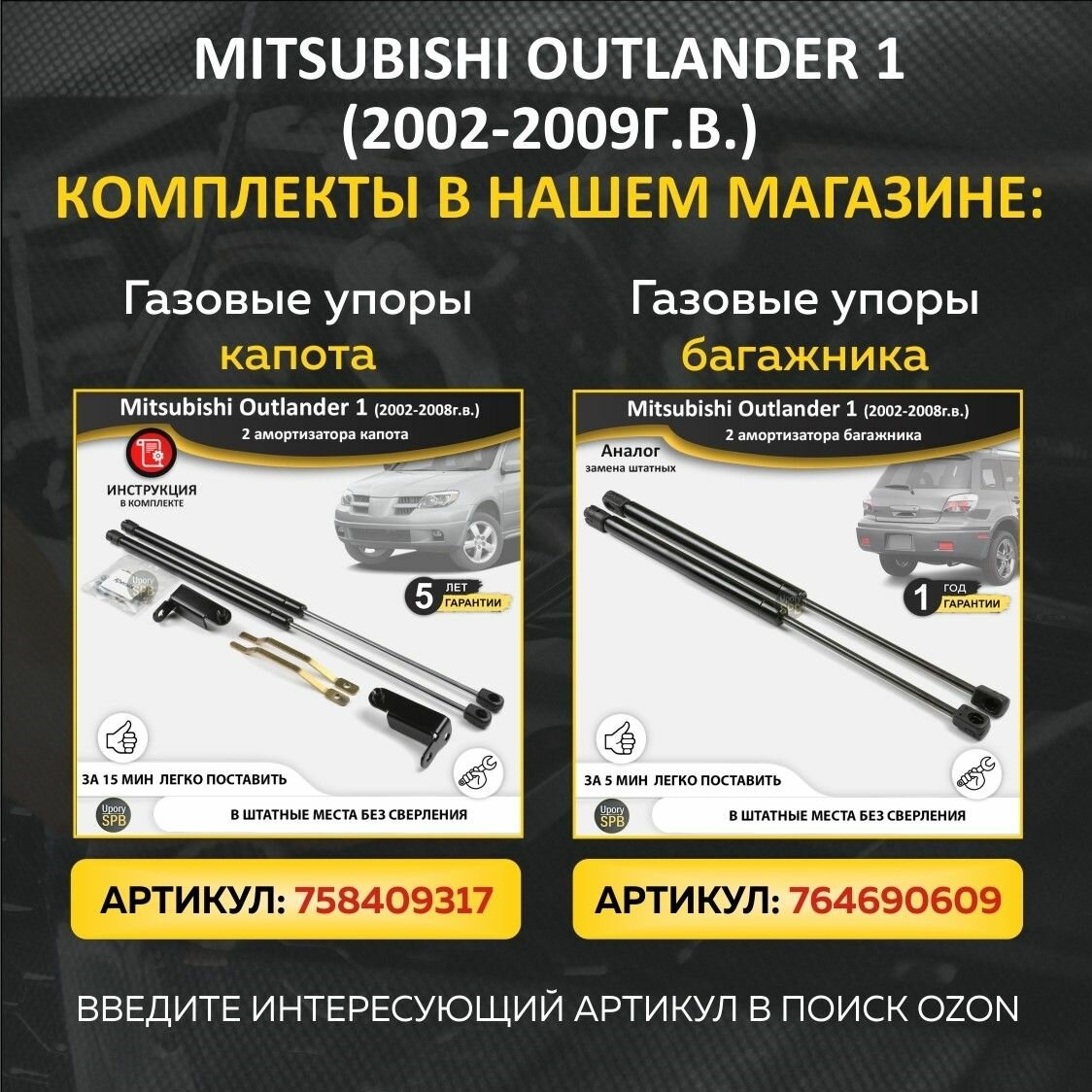 Купить Газовые упоры (амортизаторы) капота для Mitsubishi Outlander 1 (2002-2009г. в.), стойки кузова 2 шт, газлифт крышки митсубиши митсубиси аутлендер оутлендер с доставкой по всей России.