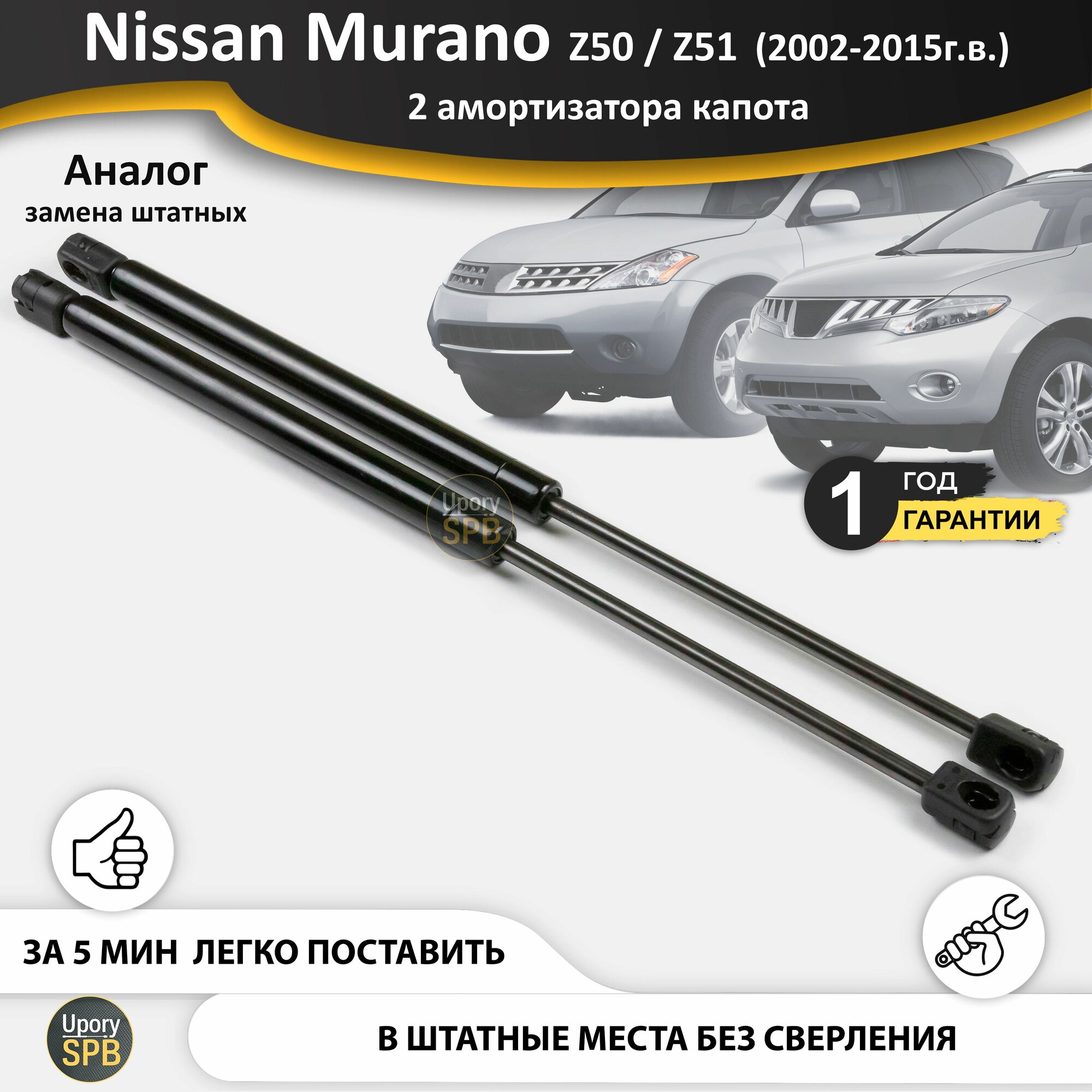 Газовые упоры (амортизаторы) капота для Nissan Murano Z50 и Z51 (2002-2015г. в.) стойки кузова 2 шт, газлифт крышки ниссан мурано з50 и з51