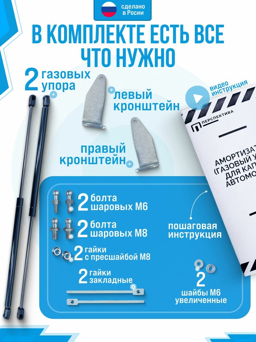 Состав комплекта разработан для конкретного авто, с учетом всех конструктивных особенностей, что обеспечивает необходимую жесткость конструкции, исключает проворот кронштейнов. Надежные газлифты, оцинкованный крепеж (кронштейны толщиной 3 мм, цинковое покрытие надежно защищает от коррозии) обеспечат долговечную работу в любых условиях.