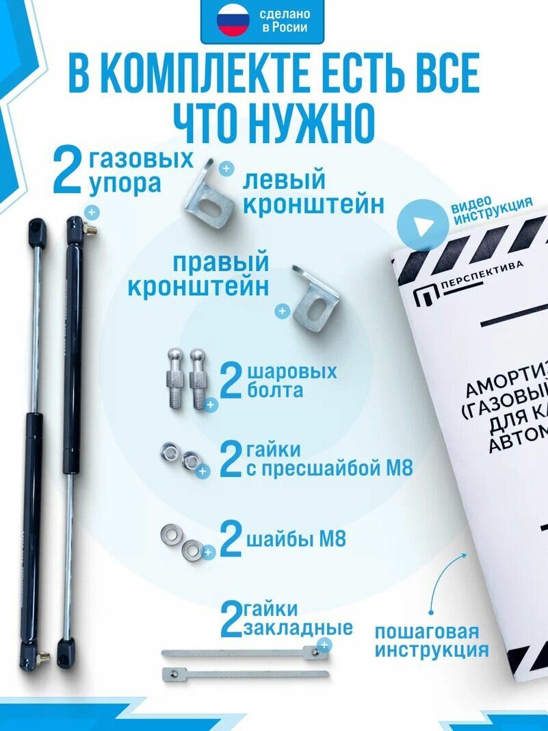 Состав комплекта разработан для конкретного авто, с учетом всех конструктивных особенностей, что обеспечивает необходимую жесткость конструкции, исключает проворот кронштейнов. Надежные газлифты, оцинкованный крепеж (кронштейны толщиной 3 мм, цинковое покрытие надежно защищает от коррозии) обеспечат долговечную работу в любых условиях.