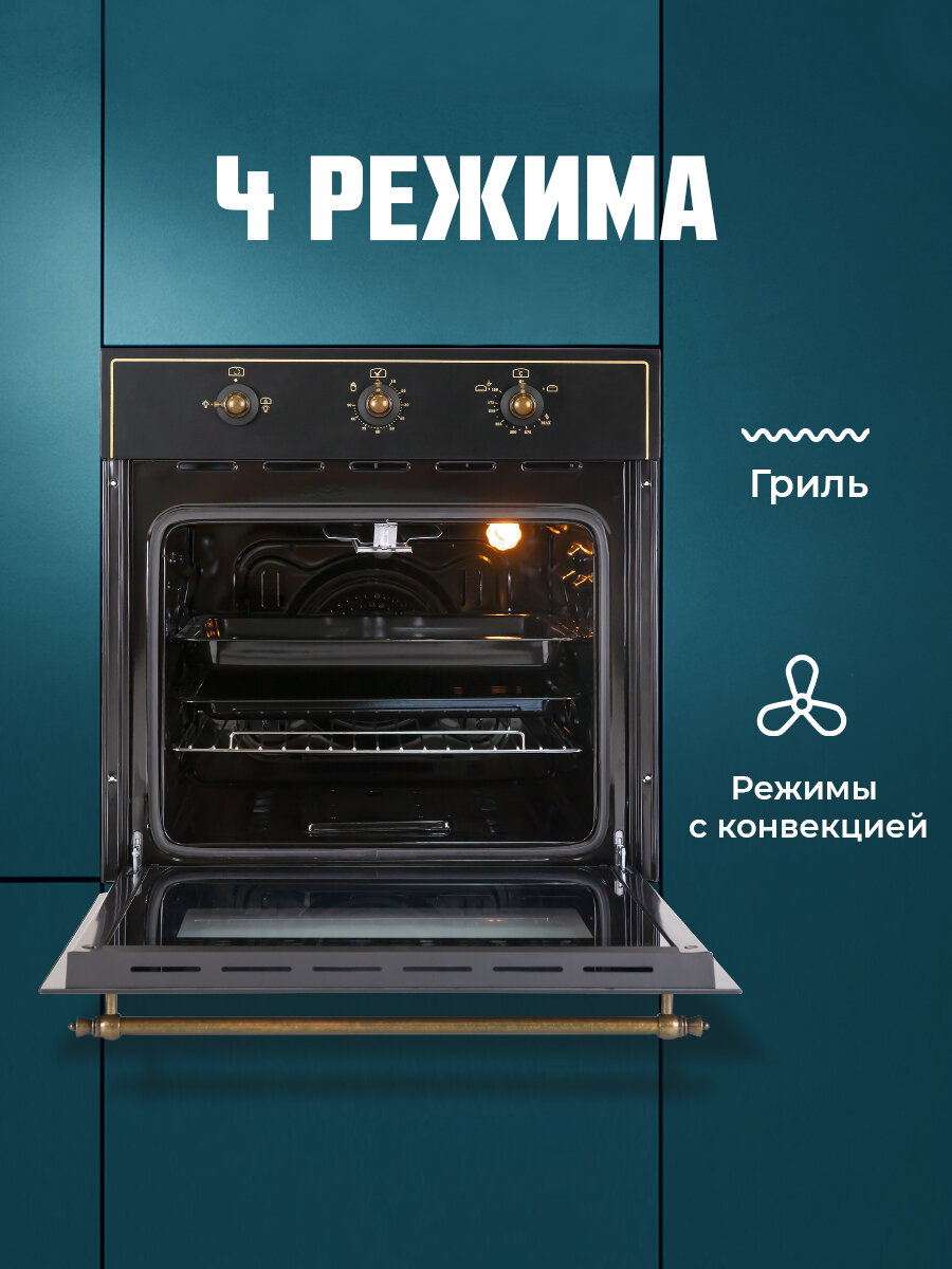 Купить Газовый духовой шкаф LAUF DG-607BL/ ширина 60см/ объём XL 71л, полностью газовая система включая гриль, механическое управление. с доставкой по всей России.