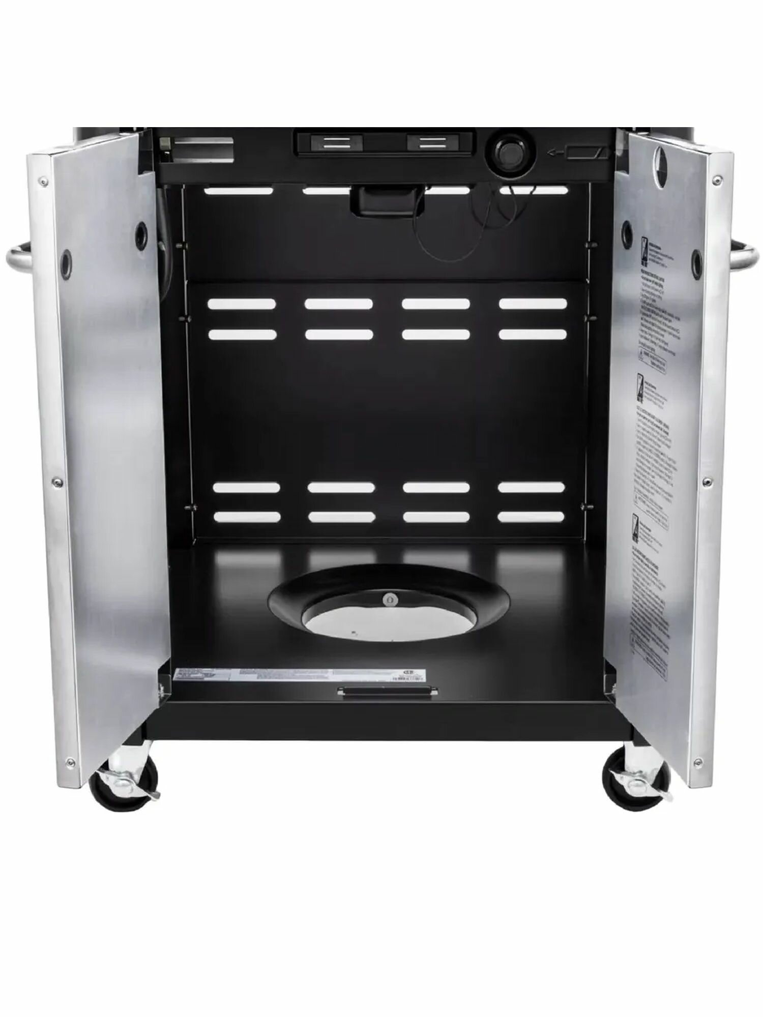 - Корпус с панелями из нержавеющей стали и нижним шкафом для аксессуаров и газового баллона