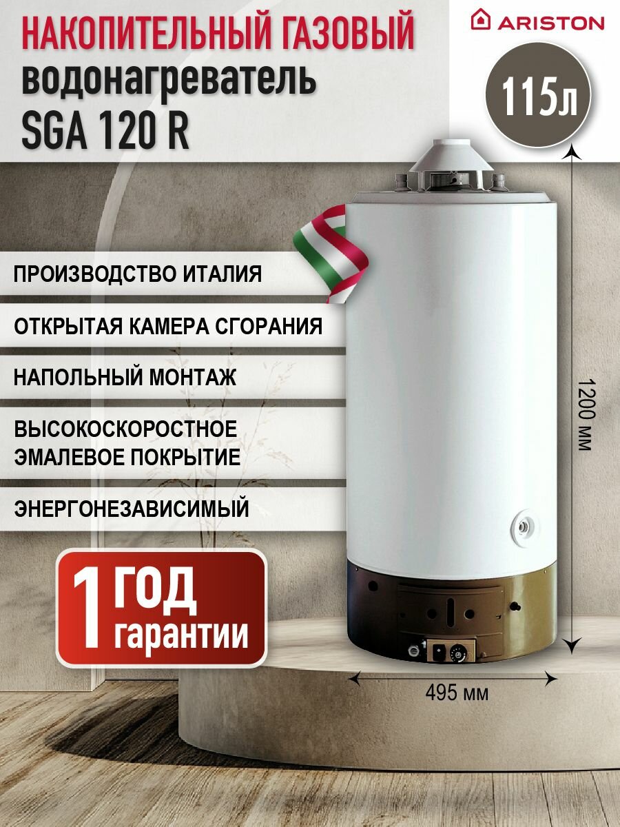 Газовый накопительный водонагреватель ARISTON SGA 120 R напольный (Италия): сравнение цен, характеристики, фото, актуальное наличие и цены.