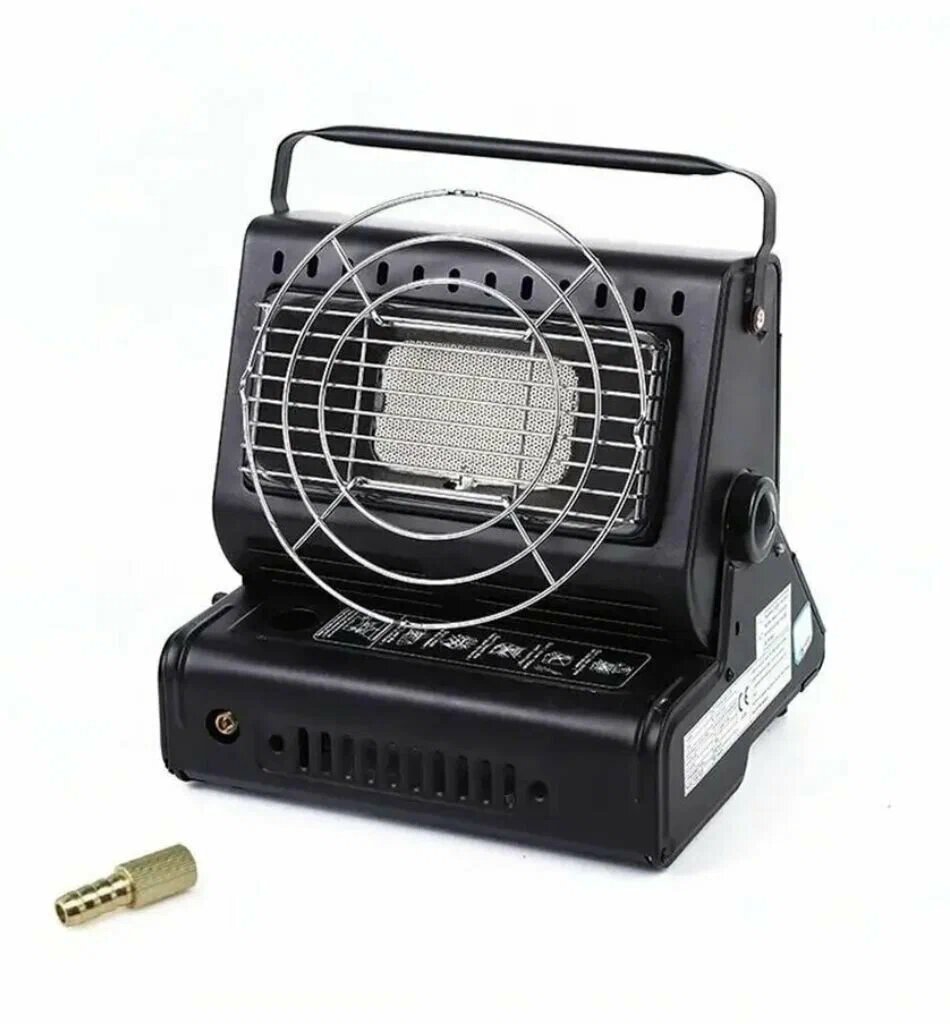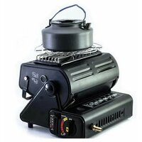 Газовый обогреватель - плита с керамическим нагревательным элементом и пьезоподжигом. Оборудован решеткой (таганком) для посуды (чайника, кастрюли сковородки). Газовая горелка - плитка - это эффективное и безопасное решение для обогрева палатки на рыбалке или охоте, уличных шатров, автотрейлеров, павильонов или небольших помещений дачного типа. Обогреватель имеет регулировку угла наклона в вертикальное и горизонтальное положения. Может выполнять функции походной кухни для приготовления пищи на природе. Это очень важный момент, так как не требуется брать с собой два предмета, и позволит сэкономить дополнительное место в багажнике автомобиля. С помощью устройства вы сможете вскипятить воду, приготовить еду, отопить помещение, посушить вещи. Газовая плита туристическая очень проста в обращении. Работает в паре с обычным цанговым баллончиком 220 гр, так и с бытовым баллоном, объемом на 5-50 л с помощью специального переходника, который идет в комплекте с теплообменником. Туристическая плитка имеет: регулятор силы горения; керамический нагнетатель, излучатель; защиту от утечки газа; защита от неправильной установки баллона. Мощность плиты: 1300 Вт - Расход топлива: 100 гр / ч - Тип огня: закрытый. Вид газа: пропан, бутан. Печка походная снабжена клапаном контроля давления газа и устройством настройки защитного картриджа, а также удобной ручкой в верхней части корпуса для переноски. Дополнительный предохранитель самопроизвольной подачи газа и включения пьезоподжига, обеспечит безопасность использования обогревателя. Перед включением пьезоподжига нужно потянуть за кольцо из боковой части корпуса предохранительный рычаг, поджечь газ, затем вернуть предохранительный рычаг в прежнее положение отпустив кольцо. В закрытом пространстве, необходимо обеспечивать приток свежего воздуха и контролировать уровень углекислого газа; включенный прибор нельзя оставлять без присмотра, а также устанавливать рядом с легковоспламеняющимися предметами; самостоятельная заправка баллона газом недопустима. Газовая плита туристическая с переходником для подключения бытовых газовых баллонов. Настольная плита - отличный вариант для рыбалки, для дачи, для отдыха на природе. Газовая горелка туристическая из стали позволяет использовать универсальные малые картриджи следопыт (газ для горелки) и газовый баллон туристический (пропан / бутан / изобутан смесь), мини переходник для подключения в комплекте.