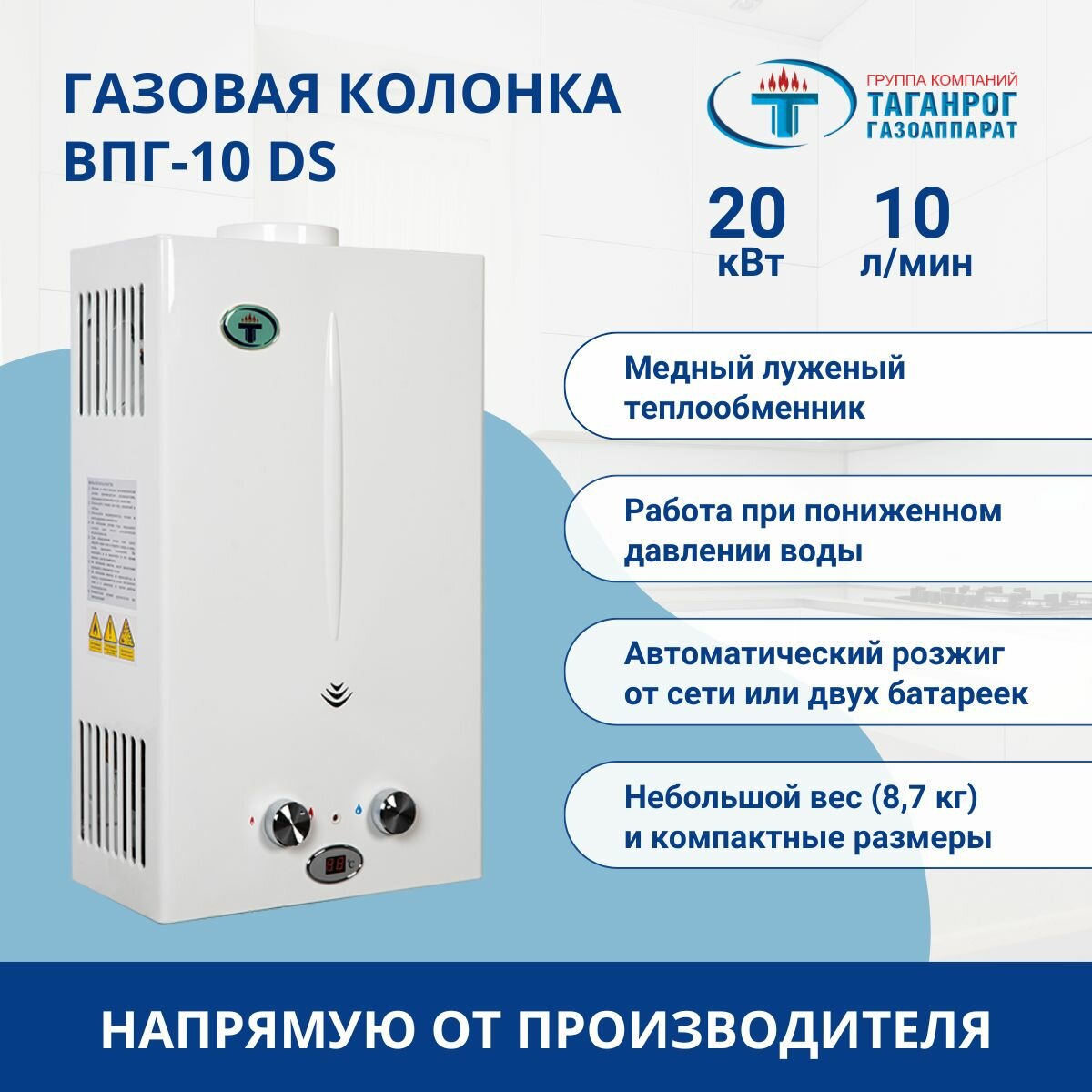 Купить Газовая колонка, проточный водонагреватель таганрог газоаппарат ВПГ-10 DS с доставкой по всей России. Газовая колонка, проточный водонагреватель таганрог газоаппарат ВПГ-10 DS: сравнение цен, характеристики, фото, актуальное наличие и цены.