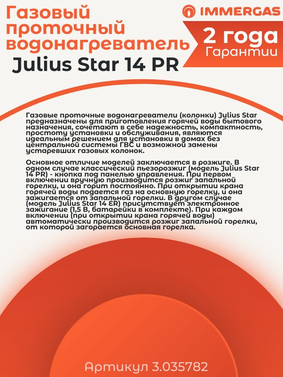 Купить Газовый проточный водонагреватель Immergas Julius Star 14 PR 3.035782 с доставкой по всей России. Газовый проточный водонагреватель Immergas Julius Star 14 PR 3.035782: сравнение цен, характеристики, фото, актуальное наличие и цены.