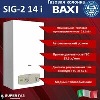 Купить Газовый водонагреватель BAXI SIG-2 14 i, проточный, автоматический розжиг, латунная гидравлическая группа, белый с доставкой по всей России. Газовый водонагреватель BAXI SIG-2 14 i, проточный, автоматический розжиг, латунная гидравлическая группа, белый: сравнение цен, характеристики, фото, актуальное наличие и цены.