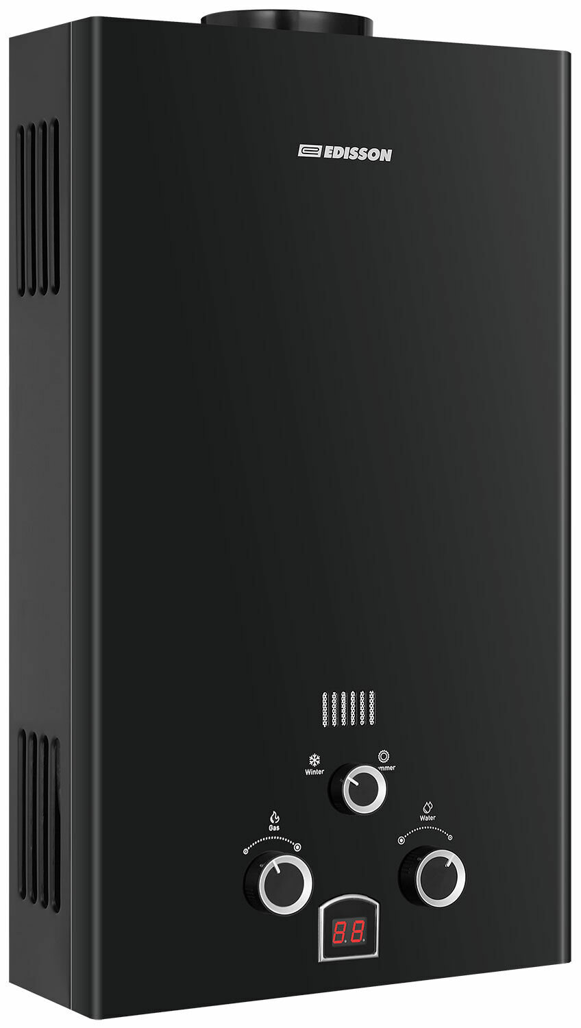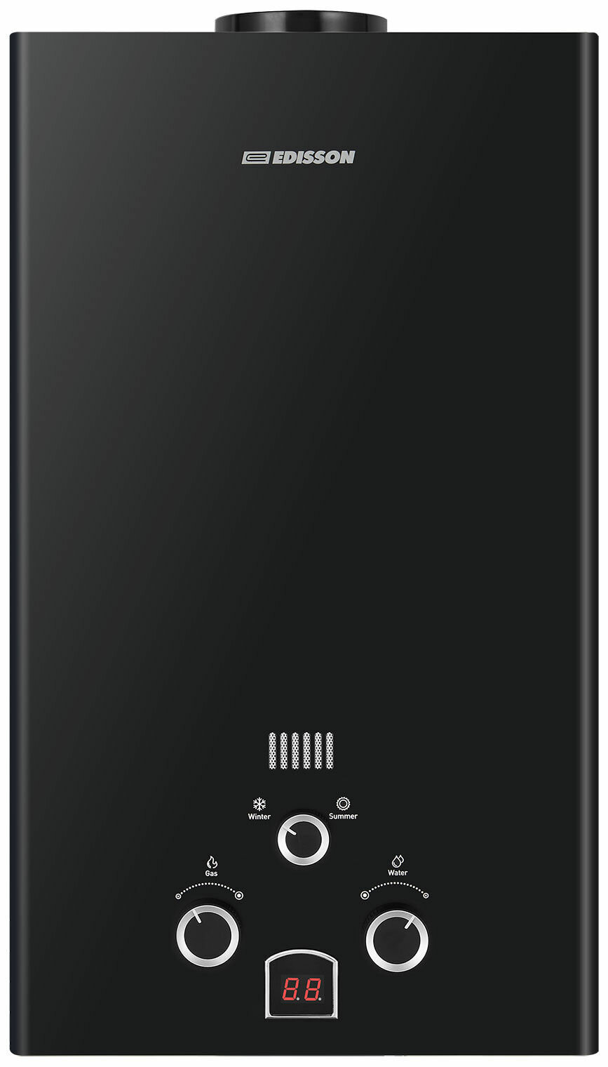Купить Газовый водонагреватель Edisson E 20 D (Black) черный, 10 л/мин, датчик протока, зима/лето с доставкой по всей России. Газовый водонагреватель Edisson E 20 D (Black) черный, 10 л/мин, датчик протока, зима/лето: сравнение цен, характеристики, фото, актуальное наличие и цены.