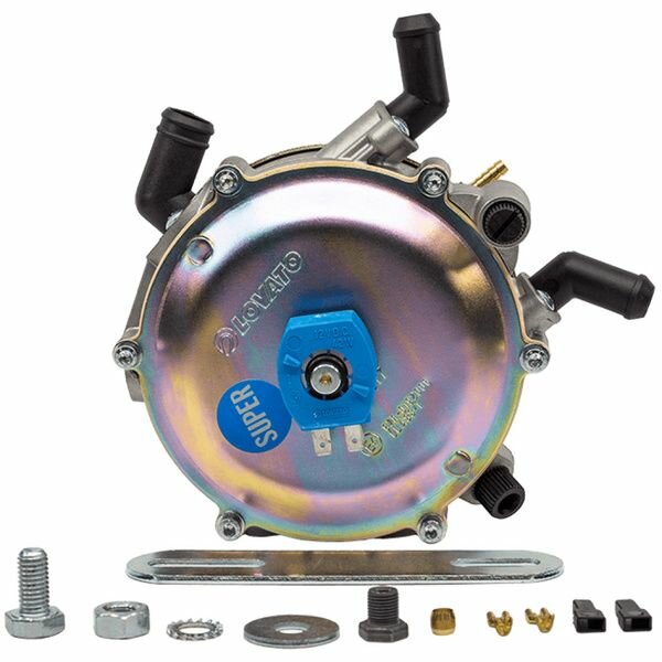 Редуктор LOVATO имеет двухступенчатую конструкцию, не оснащен фильтром жидкой фазы и электромагнитной катушкой для открытия и закрытая подачи газа. Поэтому перед ним необходимо обязательно ставить электромагнитный газовый клапан с фильтром.