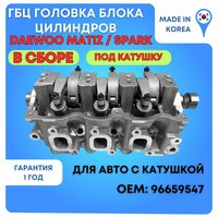 Головка блока ГБЦ на Дэу Матиз 0,8 под катушку Daewoo Matiz 0,8 новая, в сборе, с клапанами, с распредвалами, полностью готова к установке, 2002, 2003, 2004, 2005, 2006, 2007, 2008, 2009, 2010, 2011, 2012 год.