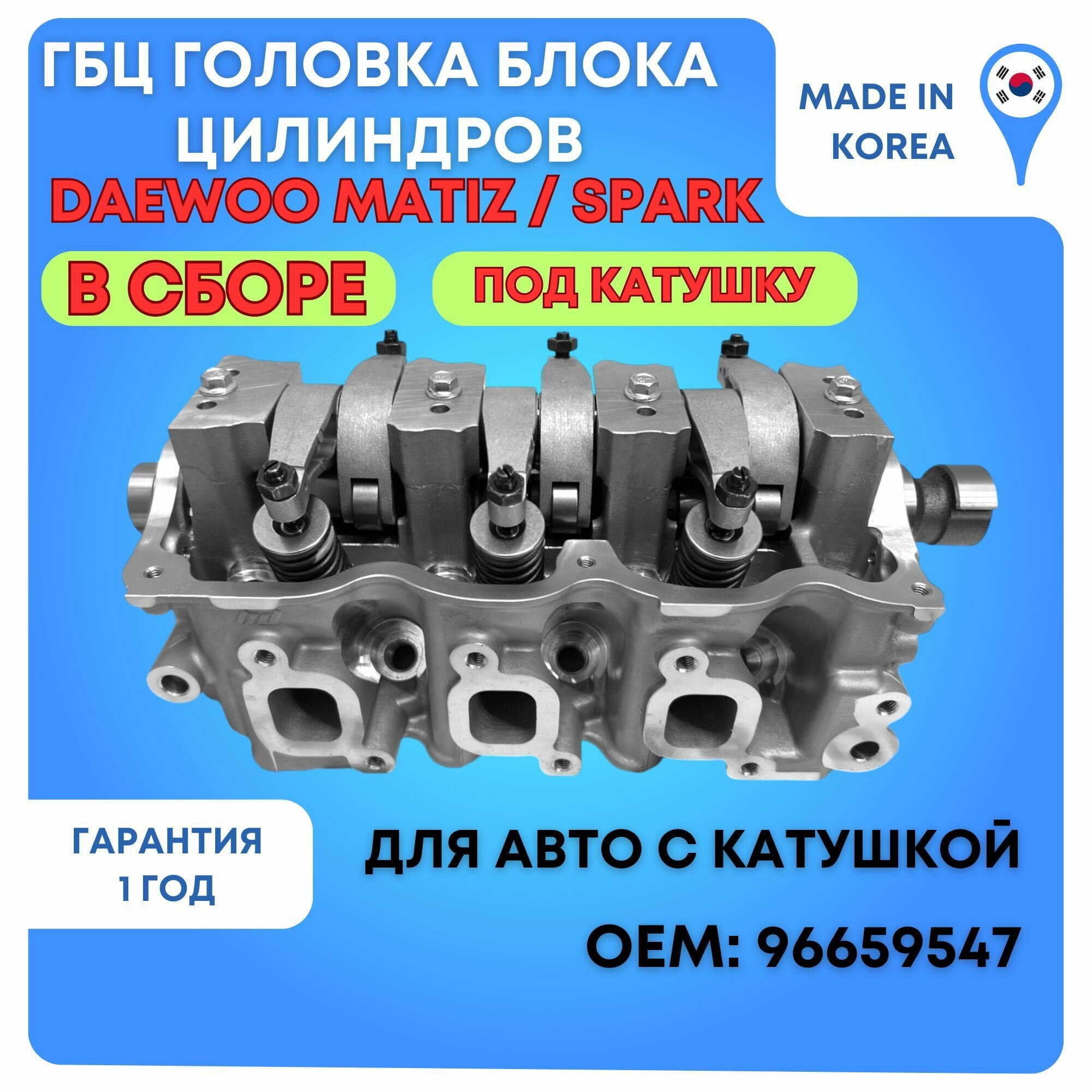 Головка блока ГБЦ на Шевроле Спарк 0,8 под катушку Chevrolet Spark 0,8 новая, в сборе, с клапанами, с распредвалами, полностью готова к установке, 2002, 2003, 2004, 2005, 2006, 2007, 2008, 2009, 2010, 2011, 2012 год.