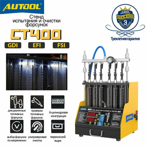 Автоматический тестер и очиститель форсунок AUTOOL CT400 для 6-цилиндровых форсунок GDI/EFI/FSI