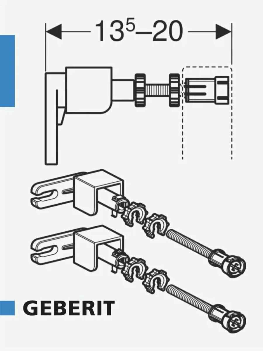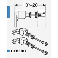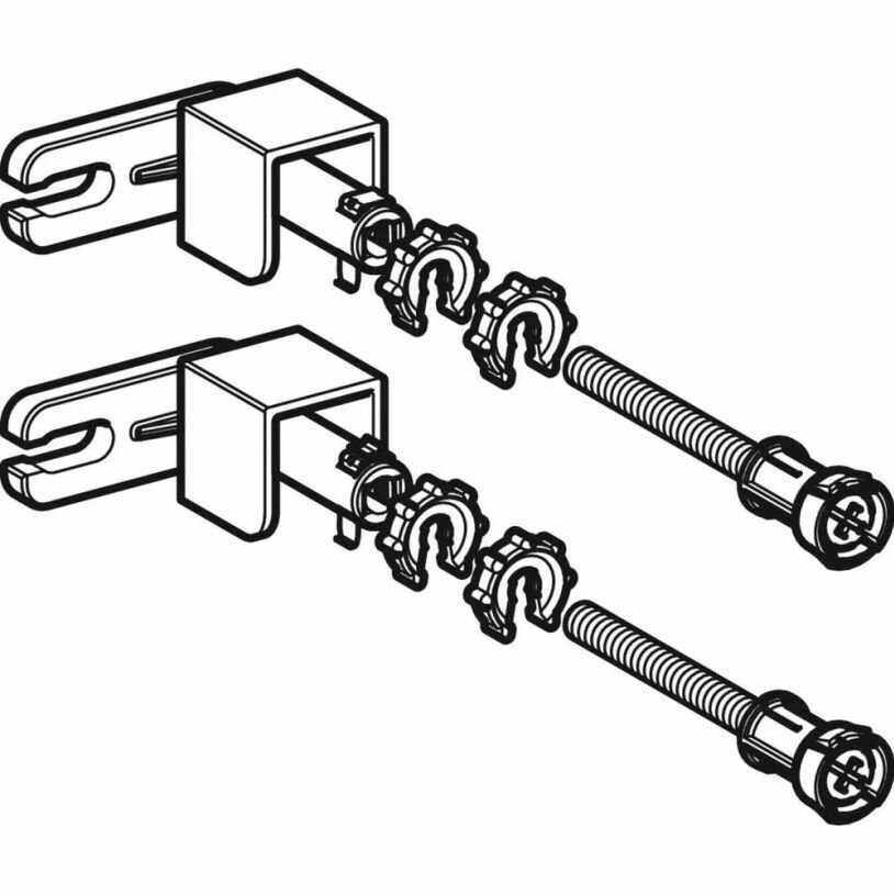 Комплект креплений Geberit Duofix 111.815.00.1. Позволяет произвести отдельный монтаж и крепление шпилек непосредственно на инсталляции, а также угловой монтаж к стене или перегородке. Имеется возможность регулировки по глубине от 130 до 200 мм.