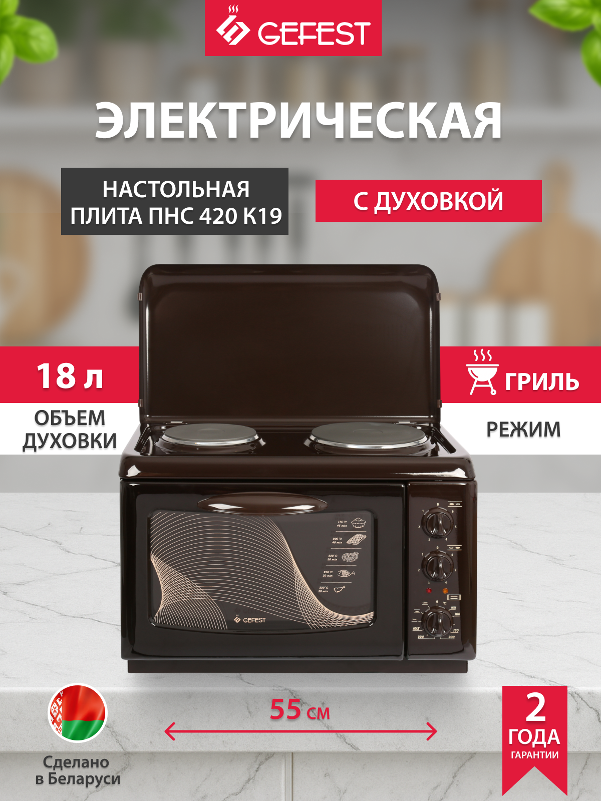 GEFEST Плита электрическая настольная ПНС 420 К19, 2 конфорки, с духовкой, коричневый: сравнение цен, характеристики, фото, актуальное наличие и цены.