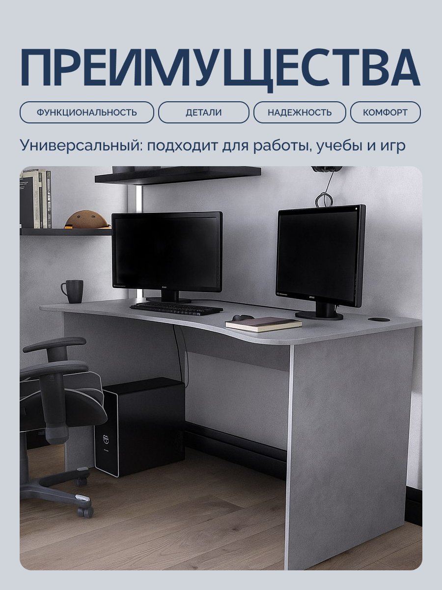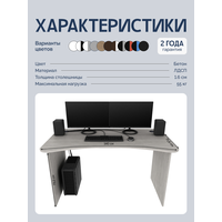 Геймерский компьютерный стол SURF 1400 Бетон - это сочетание функциональности и стиля.