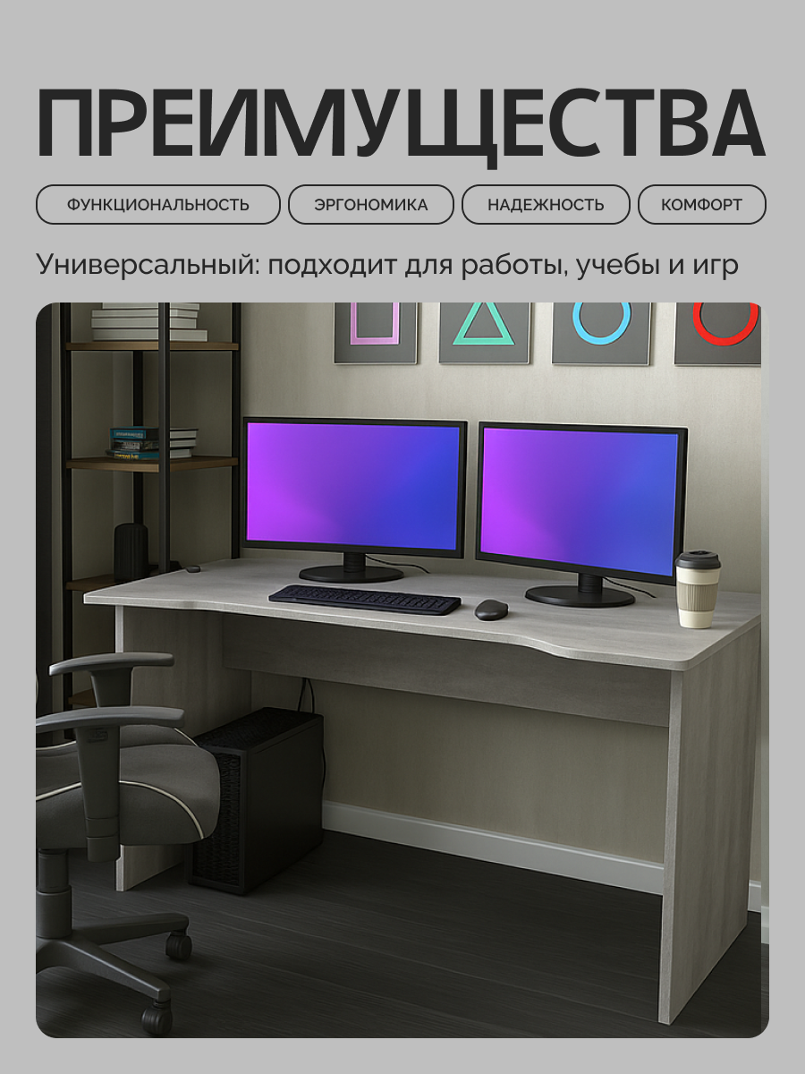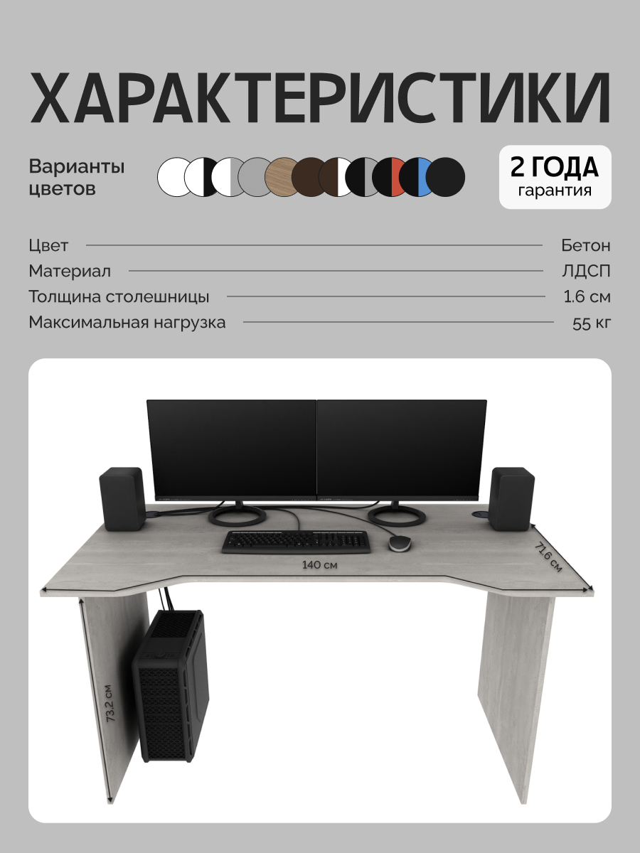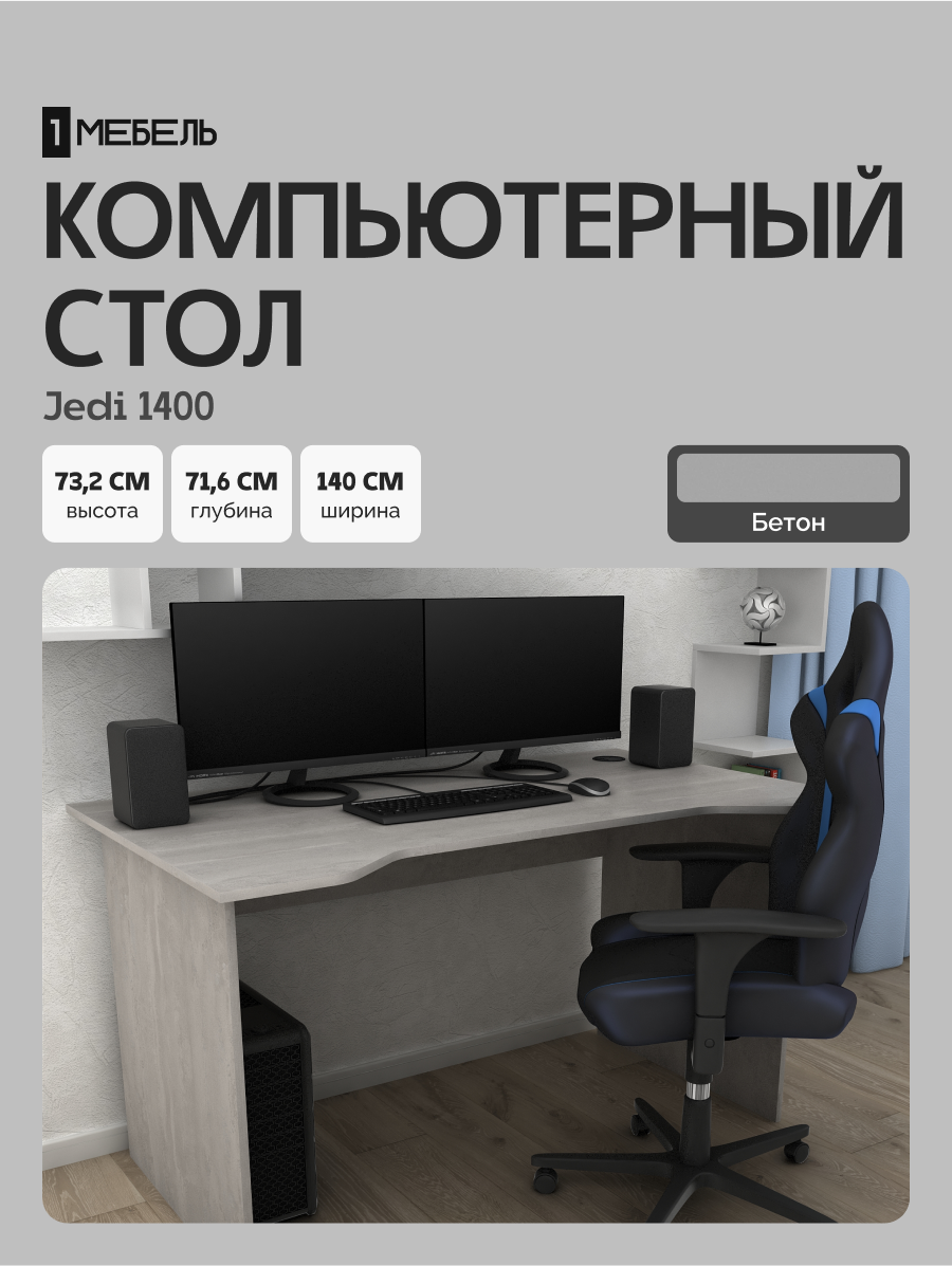 Стол компьютерный, письменный, игровой Jedi 1400 Бетон, 140*71,6 см.: сравнение цен, характеристики, фото, актуальное наличие и цены.