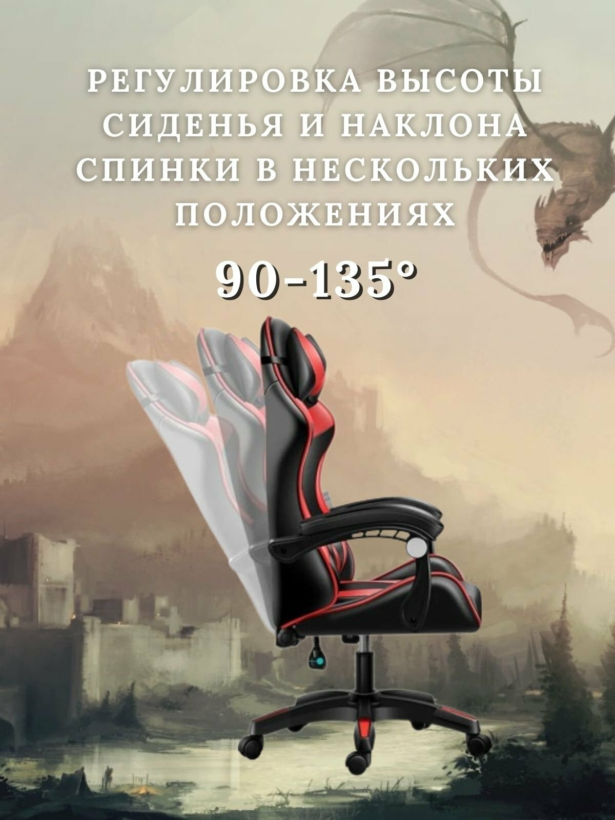 Удобное эргономичное компьютерное кресло для тех, кто долго работает или играет за компьютером. Ортопедическая поддержка спины дает возможность отдыхать, не вставая из за стола. Ортопедическая конструкция сидения и спинки. Стильный яркий дизайн. Обивка из высококачественной экокожи с большим сроком службы. Комбинированный цвет обивки в сочетании красного и черного. Надежный каркас из металла, хромированая пятилучевая крестовина диаметром 70 см. Изогнутые подлокотники с мягкими подушками из полиуретана. Спинка с боковой поддержкой спины ортопедичискими подушками на уровне поясницы и подголовника. Размер спинки 80*40 см. Угол наклона спинки от 90 до 160 градусов, фиксируется в нескольких положениях. Наклон регулируется за счет давления на спинку тела. Сидение не деформируется при длительном давлении, перфорированная обивка для вентиляции. Размер основания сидения 48*38 см. Высота сидения регулируется плавным механизмом газлифт от 45 до 53 см.