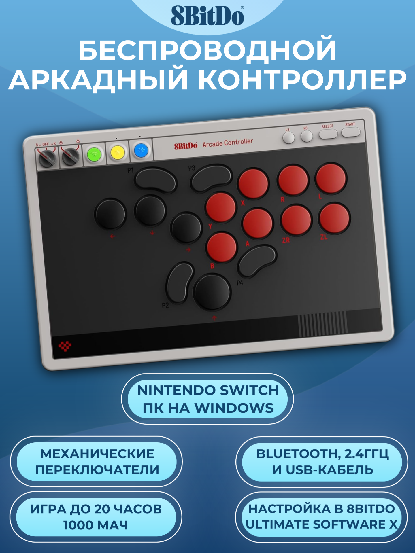 Купить Геймпад 8BitDo Arcade Controller, контроллер для аркадных игр на Nintendo Switch и ПК, черный/красный с доставкой по всей России.
