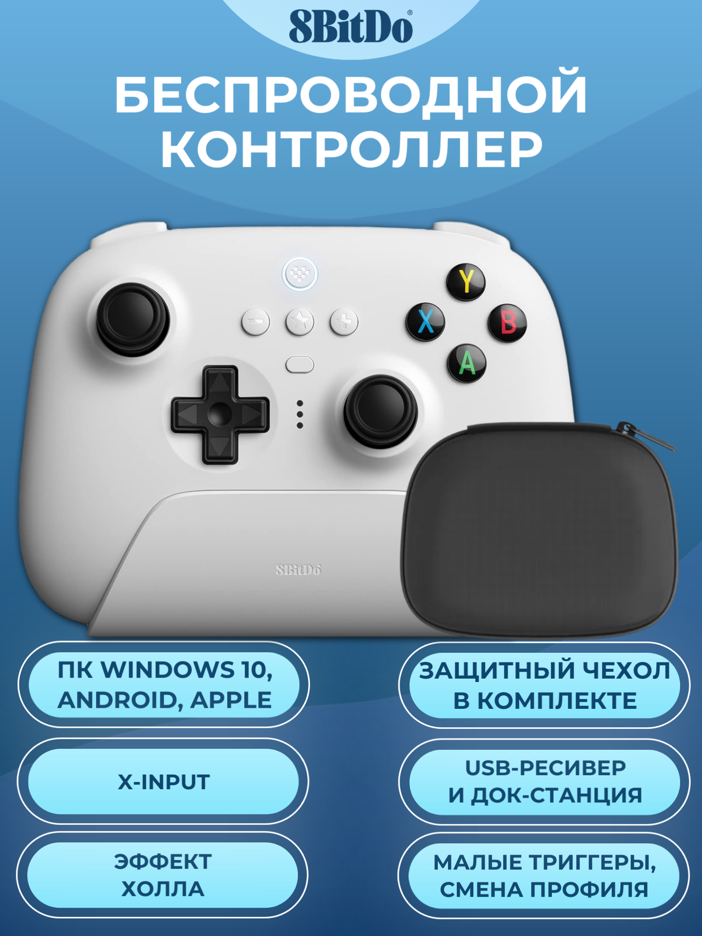 Купить Беспроводной геймпад 8BitDo Ultimate 2.4G Wireless Controller для ПК, Android, Apple, белый, в чехле с доставкой по всей России.