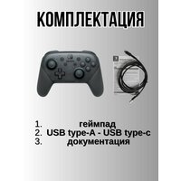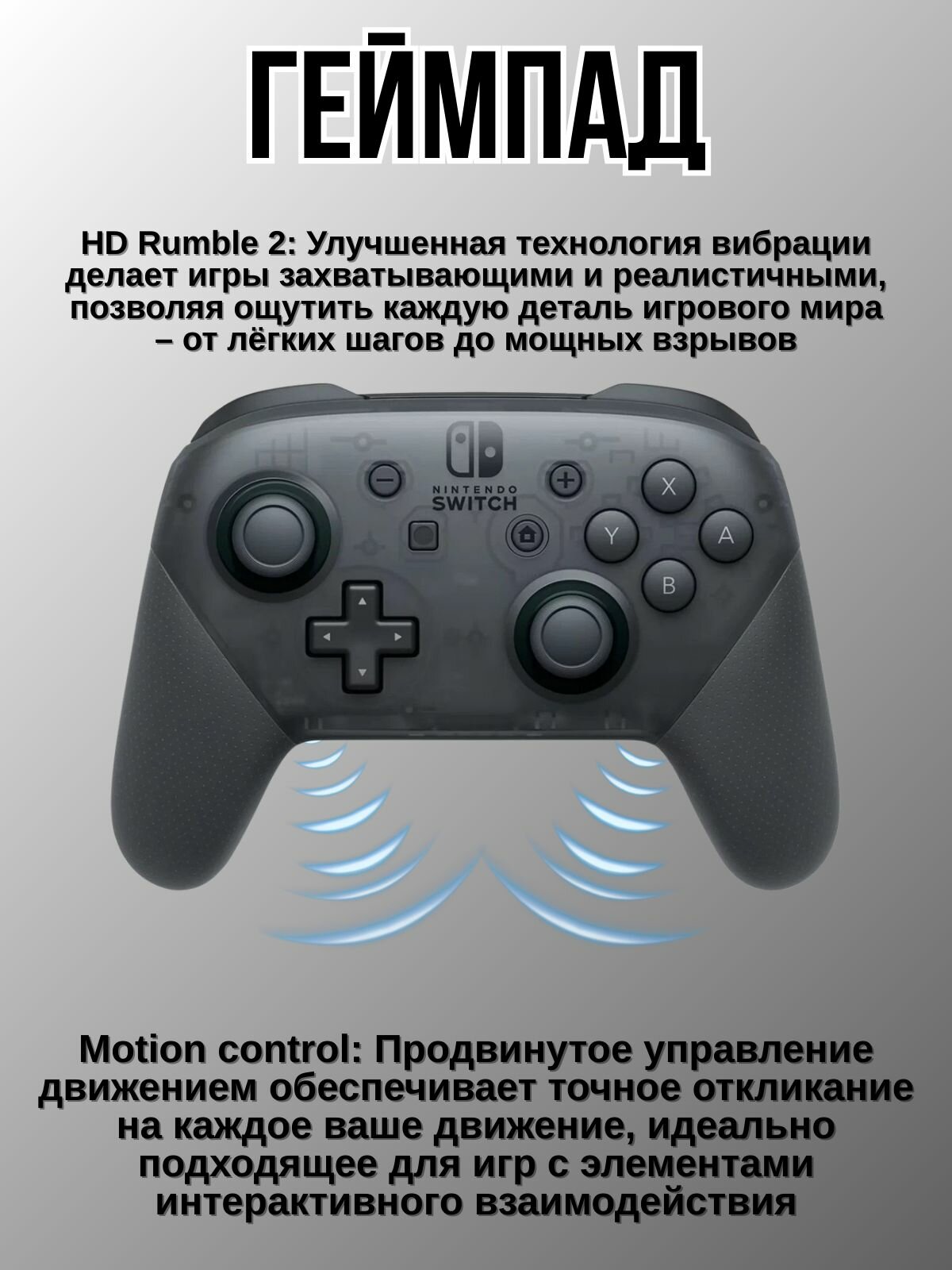 Pro Controller – продвинутый контроллер для игровой консоли Nintendo Switch. В ряде игр он существенно повышает управляемость, поэтому геймер сможет получить больше удовольствия и добиться впечатляющих успехов. Максимальный контроль над игрой. Устройство хорошо лежит в руках, на нём удобно расположены кнопки и мини-джойстики. Благодаря этому у геймера не будет проблем с контролем над действиями персонажа, и он сможет выполнять сложные трюки или удары в файтингах. Быстрое подключение. Встроенный модуль NFC делает подключение контроллера к игровой приставке особенно простым и быстрым. На корпусе контроллера есть индикатор подзарядки. Благодаря этому владелец своевременно узнает, что устройство нужно подключить к сети, чтобы пополнить запас энергии в аккумуляторе.