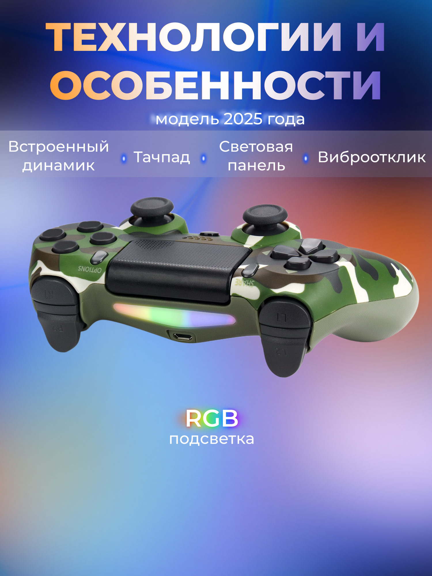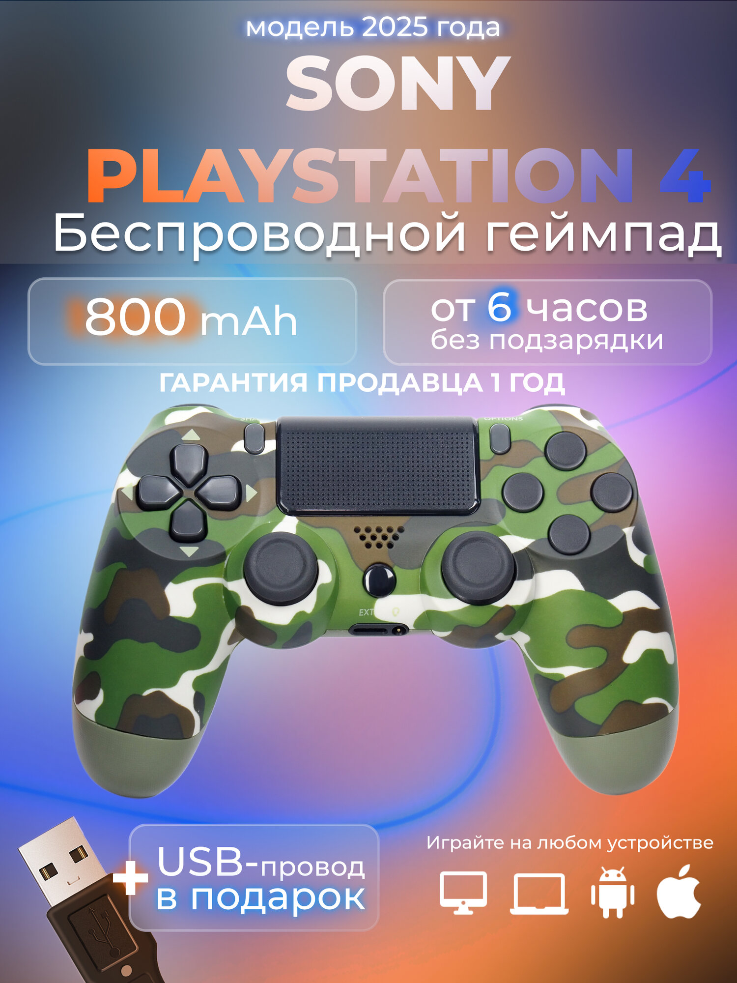 Геймпад для Sony PlayStation 4 беспроводной контроллер PS4 (джойстик)V2 для смартфона и ПК Bluetooth, зеленый камуфляж: сравнение цен, характеристики, фото, актуальное наличие и цены.