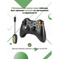 Купить Геймпад джойстик для Microsoft Xbox 360 и компьютера, беспроводной, виброотдача, черный с доставкой по всей России.