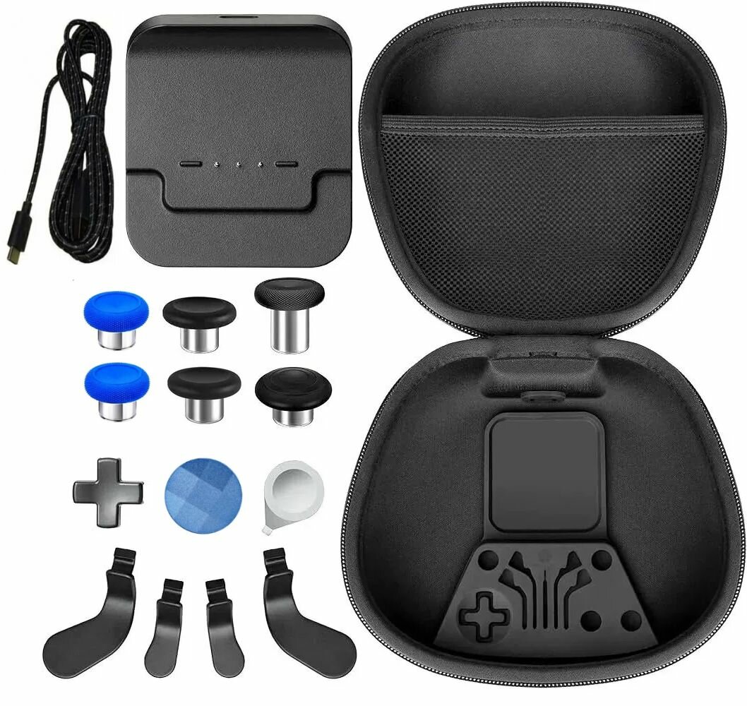 | Подробная комплектация | Беспроводной геймпад Xbox Elite Series 2 Чехол - кейс Набор из 6 стиков: стандартные (2), классические (2), высокий (1), широкий купол (1) Набор из 4-х лопастей: средние (2), мини (2) Набор из 2 D-подушек: стандартные, гранёные Инструмент для регулировки стиков Подзаряжающая док-станция Кабель USB-C |
