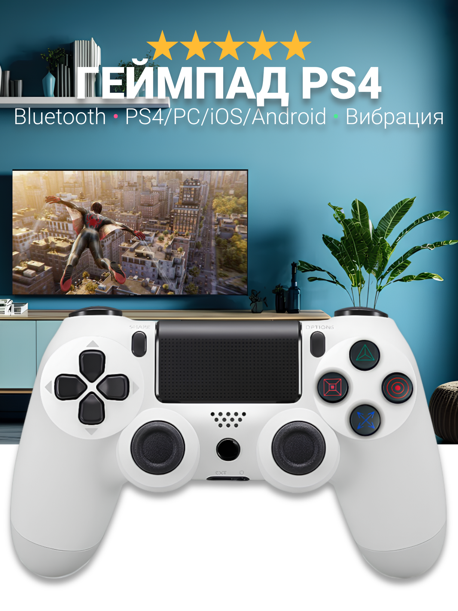Геймпад PS4, беспроводной джойстик для ПК/PC, Android, iOS, iPhone, подключение по bluetooth или проводу, белый: сравнение цен, характеристики, фото, актуальное наличие и цены.