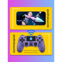 Купить Геймпад PS4, беспроводной джойстик для ПК/PC, Android, iOS, iPhone, подключение по bluetooth или проводу, фиолетовый с доставкой по всей России.