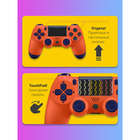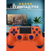 Купить Геймпад PS4, беспроводной джойстик для ПК/PC, Android, iOS, iPhone, подключение по bluetooth или проводу, оранжевый с доставкой по всей России.