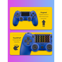 Купить Геймпад PS4, беспроводной джойстик для ПК/PC, Android, iOS, iPhone, подключение по bluetooth или проводу, синий с доставкой по всей России.