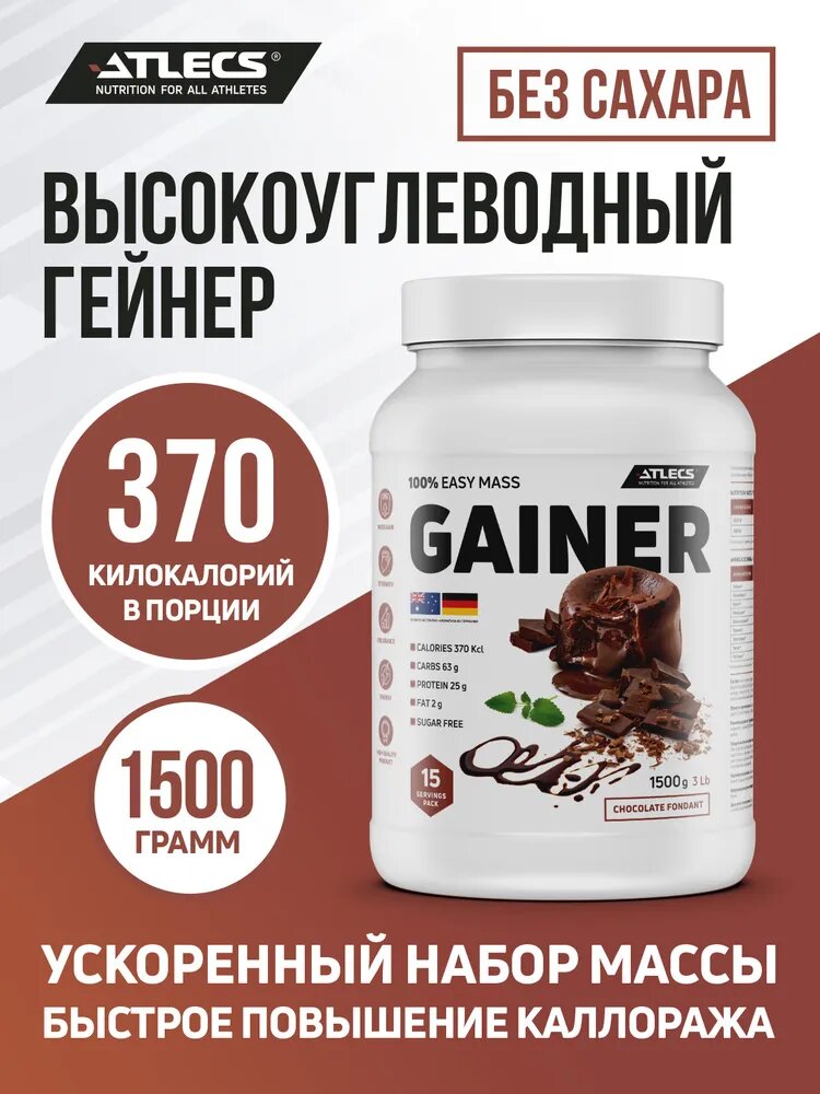 Гейнер Atlecs Gainer в порошке вкус Шоколадный фондан 1500 грамм: сравнение цен, характеристики, фото, актуальное наличие и цены.