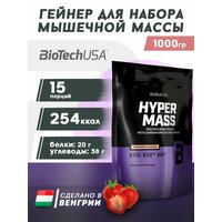 Гейнер BioTech Hyper Mass для набора мышечной массы 1000g (Клубника): сравнение цен, характеристики, фото, актуальное наличие и цены.