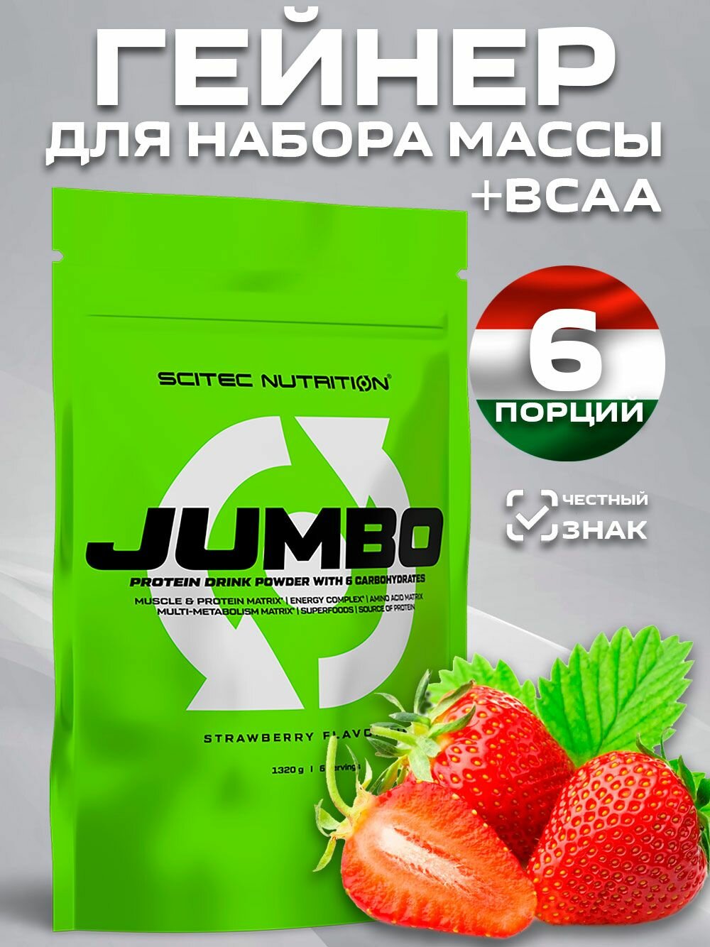 Гейнер. Gainer Jumbo 1320 гр. Белково — углеводном комплекс. Клубника: сравнение цен, характеристики, фото, актуальное наличие и цены.