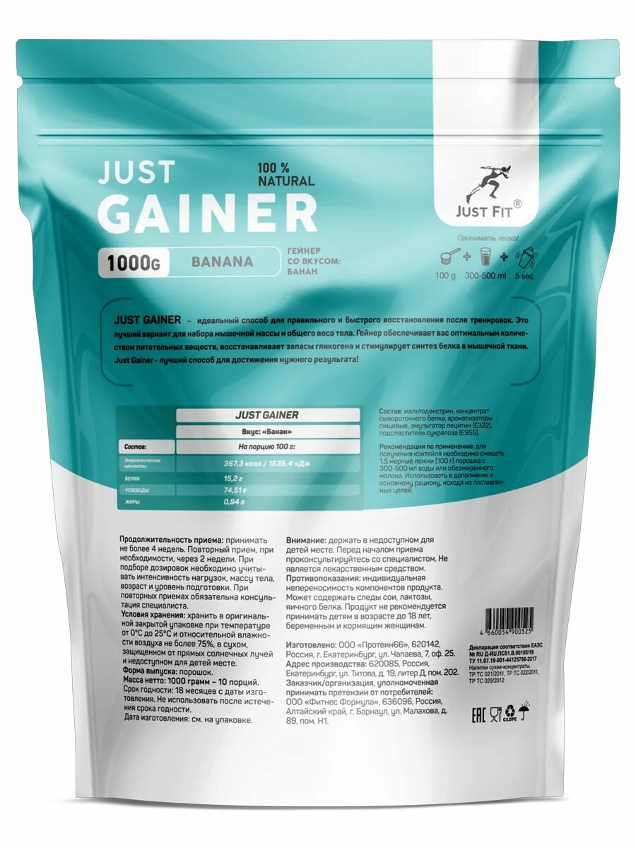 Купить Гейнер Just Fit, высокоуглеводный, для набора мышечной массы, без сахара, банан, 1 кг с доставкой по всей России. Гейнер Just Fit, высокоуглеводный, для набора мышечной массы, без сахара, банан, 1 кг: сравнение цен, характеристики, фото, актуальное наличие и цены.