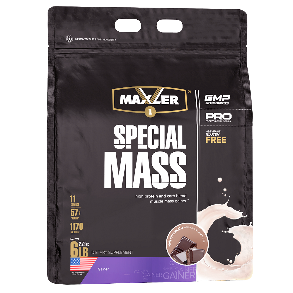 Special Mass – это специально разработанная необыкновенно мощная формула для роста мышц, созданная для активных людей, которым для оптимального здоровья и мышечной деятельности нужны высококачественные протеины, повышенные дозы сложных углеводов и питательных веществ. Продукт особенно подойдет тем, кому сложно набрать массу, а также атлетам, нуждающимся в высокоуглеводной пище как в дополнении к программе тренировок на выносливость. Каждая порция Special Mass содержит 6 различных видов протеина. Высококачественный углеводный бленд создает длительное высвобождение питательных веществ, необходимых для фазы набора массы, обеспечивая максимальное питание мышц и способствуя их быстрому росту. Внушительная аминокислотная смесь, содержащая более 6 г аминокислот с разветвленной цепью (BCAA), помогает существенно улучшить эффективность тренировок, избежать мышечных болей и ускорить восстановление. Высококачественные ферменты улучшают пищеварение и гарантируют, что вы получите максимально возможную питательную ценность из данного белкового-углеводного коктейля. И все это в сочетании с невероятным натуральным вкусом! Мы разделили Special Mass на 5 ключевых функций, которые помогут насытить ваш организм всеми необходимыми питательными веществами в оптимальных дозах: MUSCLEFUEL Специально разработанная смесь для набора массы. Чистейшая, высококачественная углеводная смесь поможет увеличить энергию, пополнить запасы в мышцах и ускорить их рост. MULTISTAGE Матрица последовательного усвоения. Идеальное сочетание протеинов быстрого, среднего и длительного высвобождения стимулирует быстрый рост мышц и поддерживает иммунитет. ENERGOCORE Моментальный заряд энергии. Активные ингредиенты новой продвинутой смеси способствуют увеличению продолжительности тренировок и тем самым ведут к более длительной и усиленной деятельности на пути к вашим целям. POWERMAX Мощный источник силы. Сложные смеси новой формулы в сочетании с особым способом доставки элементов обеспечивают самый эффективный процесс построения мышц. MYORECOVERY Суперэффективное мышечное восстановление. Мощный комплекс аминокислот с разветвленной цепью (BCAA) гарантирует, что ваш организм получит все необходимые ингредиенты для стимулирования мышечного роста и восстановления каждой клетки тела. Рекомендации по применению: для получения одной порции смешайте 240 г порошка (4 мерные ложки) с 550-600 мл воды или молока. Для достижения желаемой консистенции можно варьировать количество жидкости. Употребляйте одну порцию Special Mass сразу после тренировки. В свободные от тренировок дни рекомендуется употреблять 0,5 порции (2 мерные ложки) продукта утром и 0,5 порции (2 мерные ложки) вечером между основными приемам пищи. Размер Порции: 4 Мерные Ложки (240 г) Состав На Порцию % РДД** Калории 920 Калории из Жиров 45 Всего Жиров 5 г 8%* Насыщенные Жиры 3,5 г 18%* Транс Жиры 0 г Холестерин 90 мг 30% Натрий 360 мг 15%* Калий 930 мг 27%* Всего Углеводов 182 г 61%* Пищевые Волокна 3 г 12%* Сахар 20 г *** Белки 37 г Витамин A 41 ME 1% Витамин C 0 мг < 1% Кальций 232 мг 23% Железо 4 мг 21% * Процент РДД основан на диете в 2000 калорий. Суточная норма может варьироваться в зависимости от индивидуальных потребностей организма. ** РДД – рекомендуемая дневная доза. *** РДД не установлена. Ингредиенты: Carbo Clean Blend (Мальтодекстрин, Фруктоза, Кукурузный Крахмал), Protein Blend (Концентрат Сывороточн