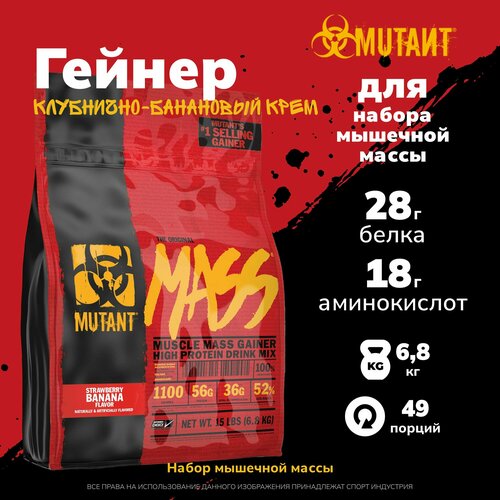 Купить Гейнер Mutant Mass 6800 грамм, Клубника-банан с доставкой по всей России.