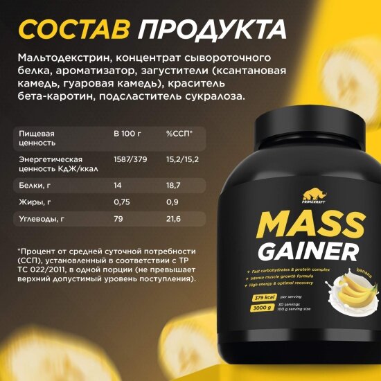 Гейнер Prime Kraft Mass Gainer (банан), 3000гр: сравнение цен, характеристики, фото, актуальное наличие и цены.