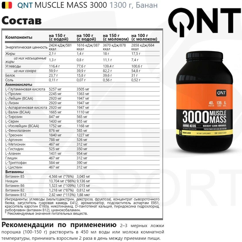 Купить Гейнер QNT MUSCLE MASS 3000 1300 г, Банан с доставкой по всей России. Гейнер QNT MUSCLE MASS 3000 1300 г, Банан: сравнение цен, характеристики, фото, актуальное наличие и цены.