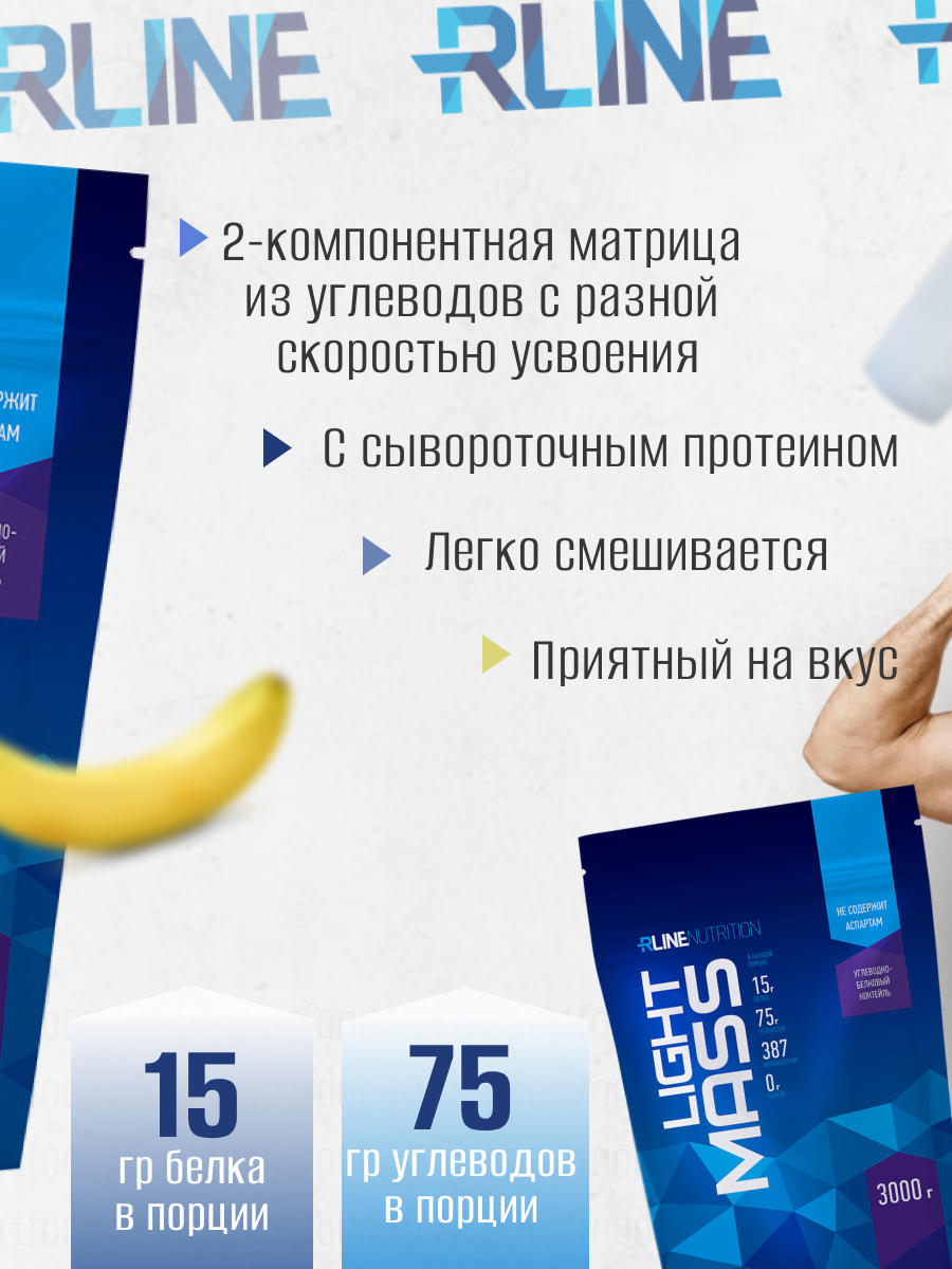Гейнер RLine Light Mass, вкус банан 3000 гр. высокоуглеводный: сравнение цен, характеристики, фото, актуальное наличие и цены.