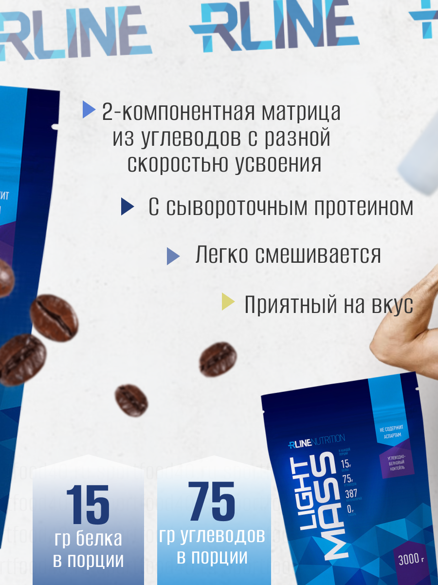Гейнер R-Line Light Mass, высокоуглеводный, 30 порций, 3 кг, моккачино: сравнение цен, характеристики, фото, актуальное наличие и цены.