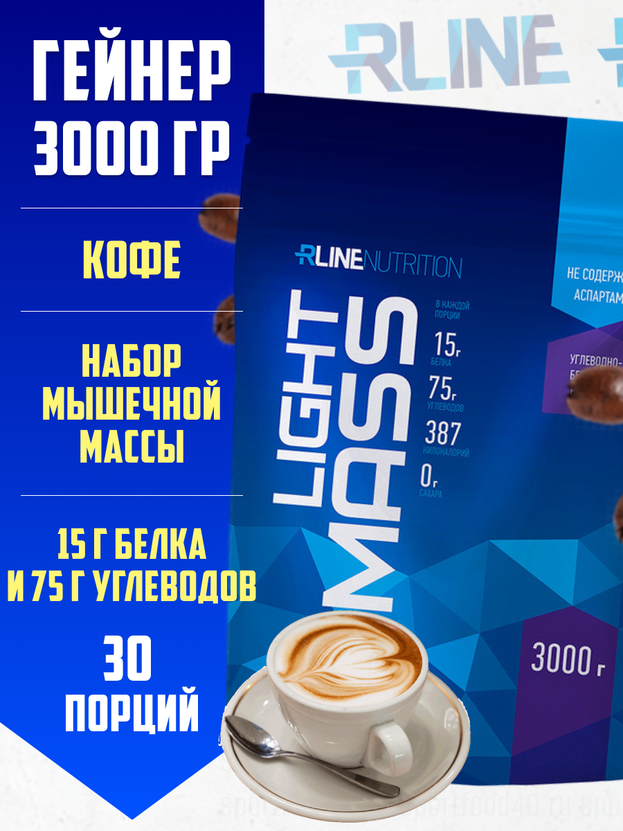 Купить Гейнер R-Line Light Mass, высокоуглеводный, 30 порций, 3 кг, моккачино с доставкой по всей России.