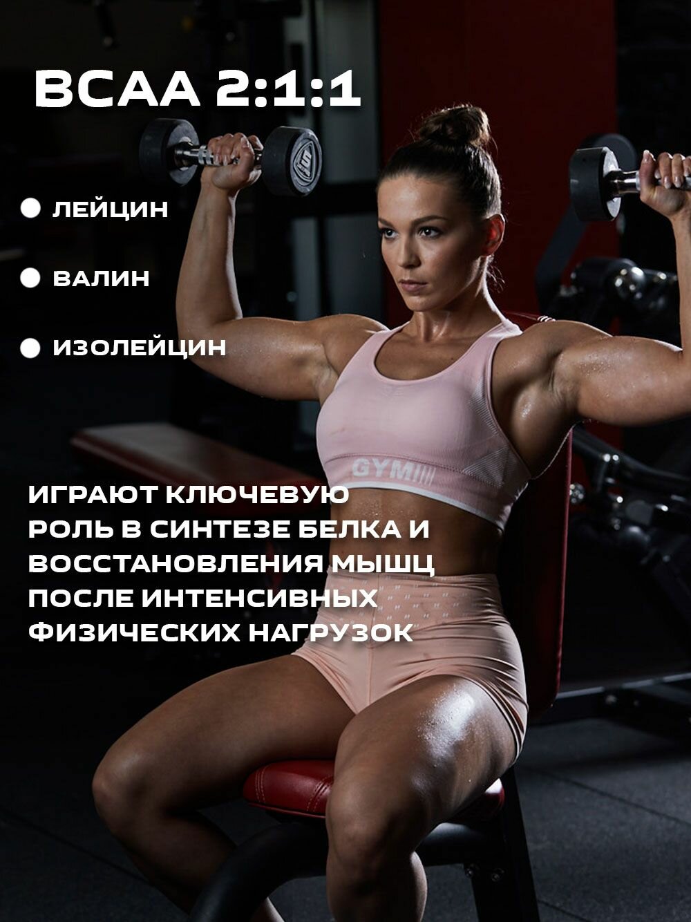 Аминокислотная матрица - 2032 мгL- глютамин - 946 мгL-лизин гидрохлорид - 75 мгL-аланин - 11 мгBCAA 2:1:1 - 1000 мгL-лейцин - 500 мг L-изолейцин - 250 мг