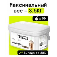Гейнер для быстрого набора массы THE 21 - вкусный белковый углеводный спортивный коктейль для набора мышечной массы. На порцию ( 60г ) идет белок - 16.7 г, углеводы - 58.7 г, жиры 8.8 г и 382 ккал. В его основе натуральные высококачественные компоненты: цельнозерновая рожь, амилопектин, мальтодекстрин и концентрат сывороточного белка. Мальтодекстрин, цельнозерновая рожь, амилопектин - функциональные, сложные углеводы, которые наполняют питательными веществами для наращивания мышечной массы. Сывороточный белок в составе обеспечивает быстрое усвоение. Важное преимущество данного продукта - присутствие быстрых и медленных углеводов в составе, что позволяет быстро набрать массу, от 3 кг- 5 кг за неделю! Ощутимый эффект от приема вы увидите уже через 14 дней. В отличие от гейнера на медленных углеводах и гейнера на быстрых углеводах гейнер для набора веса THE 21 более универсален и эффективен. Большая удобная упаковка объемом 3600 гр ( 3,6 кг) рассчитана на 60 порций. Рекомендуем принимать клубничный, высокобелковый гейнер 2 раза в день между приёмами пищи. Гейнеры улучшают набор массы, подходят как для мужчин, так и для женщин.