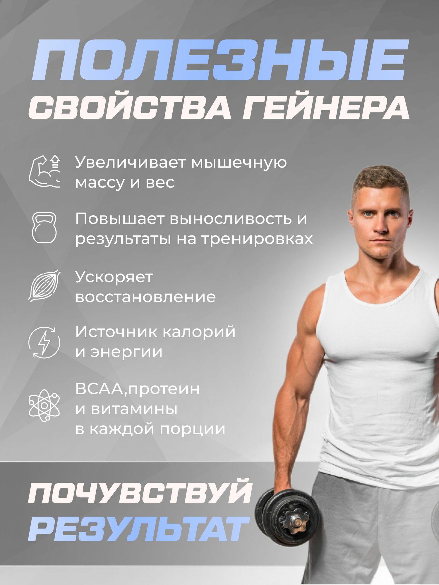 Что делает наш профессиональное спортивное питание таким особенным? Все начинается с тщательно подобранных компонентов, восстанавливающих мышцы, способствующих поднимать большие веса. Наш секрет успеха заключается в использовании овсяной муки, источника медленных углеводов. Она дарит вашему телу долгосрочный запас энергии, который не позволит усталости взять вверх. Богатая пищевыми волокнами, овсяная мука также способствует улучшению пищеварения и создает ощущение сытости, что особенно важно для тех, кто стремится к набору массы. А что насчет кокосового масла? Оно не только придает богатый вкус, аромат и текстуру, но и является источником полезных жирных кислот. Кокосовое масло богато витаминами и микроэлементами, которые способствуют улучшению пищеварения и усваиваемости питательных веществ. Товар также содержит ультрафиолетовый концентрат молочного КМБ-85 белка, который состоит из 85% казеина и 15% сывороточного протеина. Эта уникальная комбинация обеспечивает ваше тело необходимыми биологически активными веществами для эффективного прогресса. И это еще не все! Мы также добавили мальтодекстрин, чтобы обеспечить ваш организм быстрыми и доступными углеводами. Абсолютно никаких Е добавок, только натуральные и полезные компоненты, которые помогут вам достичь ваших целей. Интересно, каково питательное содержание нашего продукта? В одной порции (100 г) вы найдете целых 550 ккал, 45 г белка, 38 г углеводов и 17 г жиров - настоящая мужская порция! К тому же, он богат клетчаткой, содержание которой составляет 5 г, и сахара - всего 7 г. Упакованный в элегантную пластиковую банку вместимостью 1500 г, наш спортпит предлагает вам 15 порций наслаждения и энергии в виде порошка, которые подойдут как для мужчин так и для женщин. Достигайте успехов вместе с командой Soul Way!