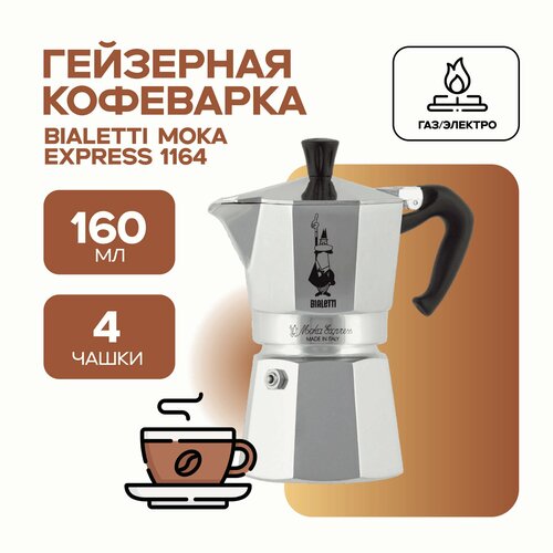 Гейзерная кофеварка Bialetti Moka Express 1164 - это классическая и известная модель гейзерной кофеварки, производимая итальянской компанией Bialetti.