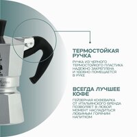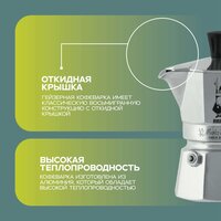Объем кофеварки составляет 420 мл, что позволяет приготовить до 9 порций кофе одновременно. Это отличный вариант для семейных завтраков или встреч с друзьями. Кофеварка имеет удобную ручку из термостойкого материала, которая не нагревается и обеспечивает комфортную и безопасную эксплуатацию.
