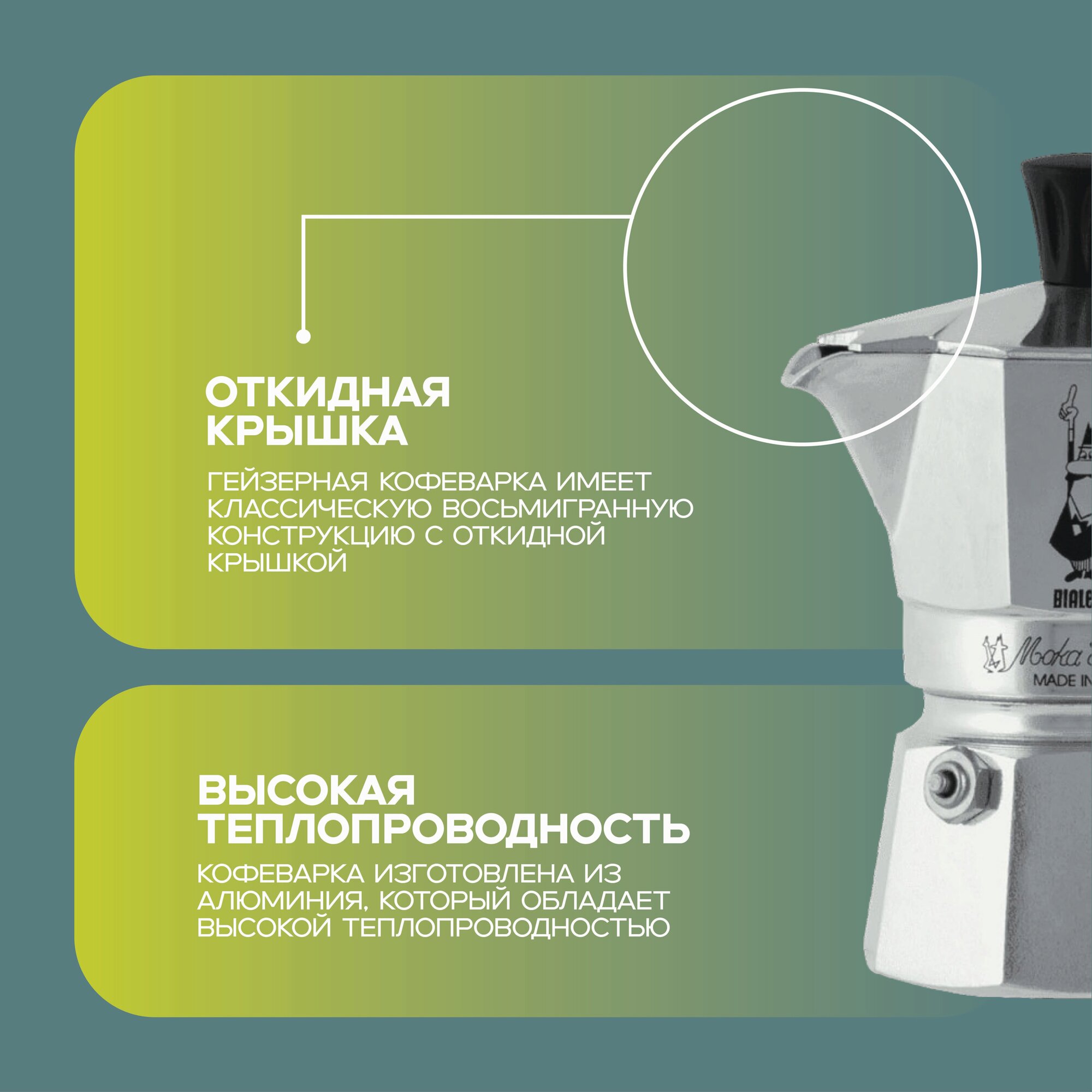 Bialetti Moka Express 1165 отличается стильным и элегантным дизайном, который будет прекрасно смотреться на любой кухне.