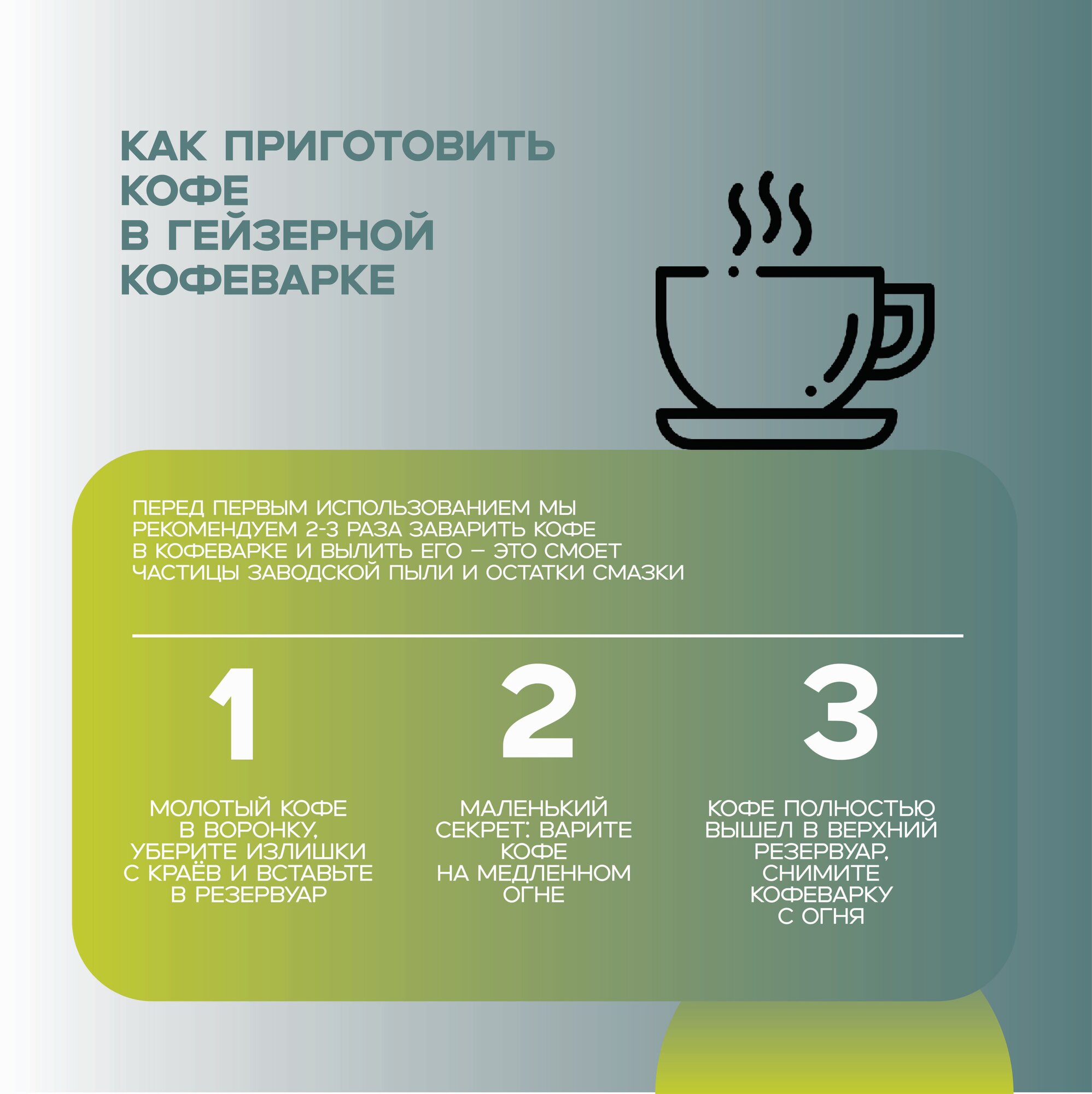Кофеварка выполнена из высококачественной нержавеющей стали, что обеспечивает ее долговечность и надежность. Благодаря уникальной системе "гейзер", кофе приготавливается очень быстро и без особых усилий. Кроме того, внутренняя поверхность кофеварки покрыта специальным слоем, который предотвращает появление неприятных запахов и сохраняет натуральный вкус кофе.