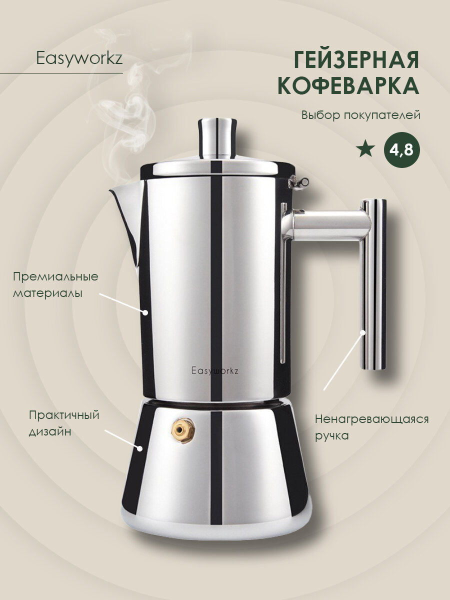 Купить Гейзерная кофеварка EASYWORKZ из нержавеющей стали на 10 порций, 500 мл с доставкой по всей России. Гейзерная кофеварка EASYWORKZ из нержавеющей стали на 10 порций, 500 мл: сравнение цен, характеристики, фото, актуальное наличие и цены.
